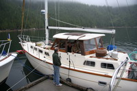 and had stopped to chat. We also met Rocky and Sue from 'Yarnspinner', and heard the 'coastal legend' about the woman who'd caught a 25 lb halibut off the dock at Sullivan Bay. It turns out the 'woman' was actually Rocky, but we didn't find this out until we had dinner with them in Prince Rupert days later.